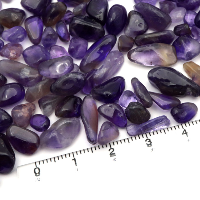 粒は思ってたより大きめでした。色は薄いものや白混じりのものもありますが、全体的に濃いめです。アメジスト最近濃いめの色ばかりよく見かけますが薄めの色味も欲しいなーと思ってます。