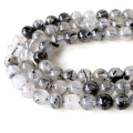 ブラックトルマリン イン クォーツ 一連 ビーズ 1本売り 6mm Aランク ブラジル産 天然水晶 長さ36-38cm前後 パーツ ハンドメイド 手作り 天然石 パワーストーン