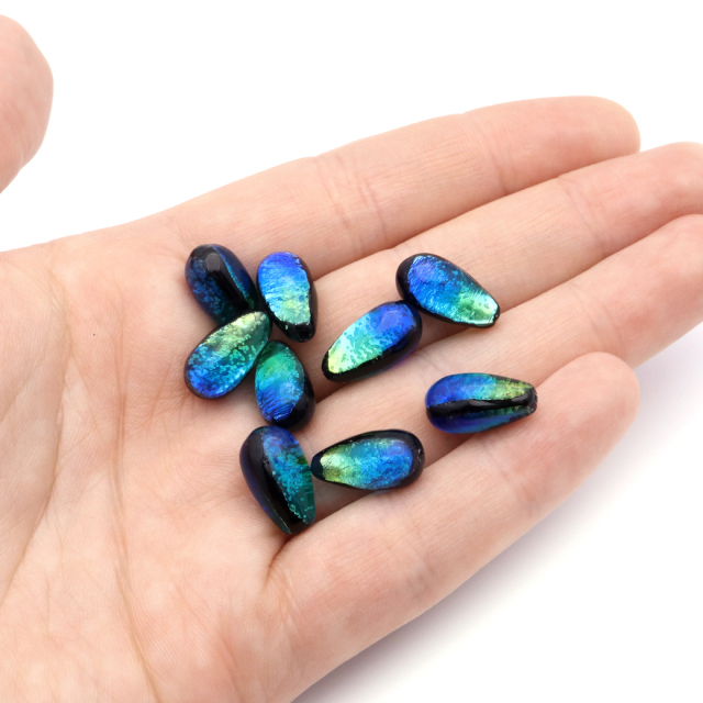 蓄光材が入っていない分、光に当たると、一粒ごとに異なるカラーと銀箔の反射するホタルガラス本来の輝きをお楽しみいただけます。