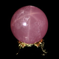 しっかりとしたスター効果が確認できる、ピンク色が濃いマダガスカル産のローズクォーツ丸玉です。