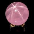 しっかりとしたスター効果が確認できる、ピンク色が濃いマダガスカル産のローズクォーツ丸玉です。