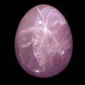しっかりとしたスター効果が確認できる、ピンク色が濃いマダガスカル産のローズクォーツたまご型です。